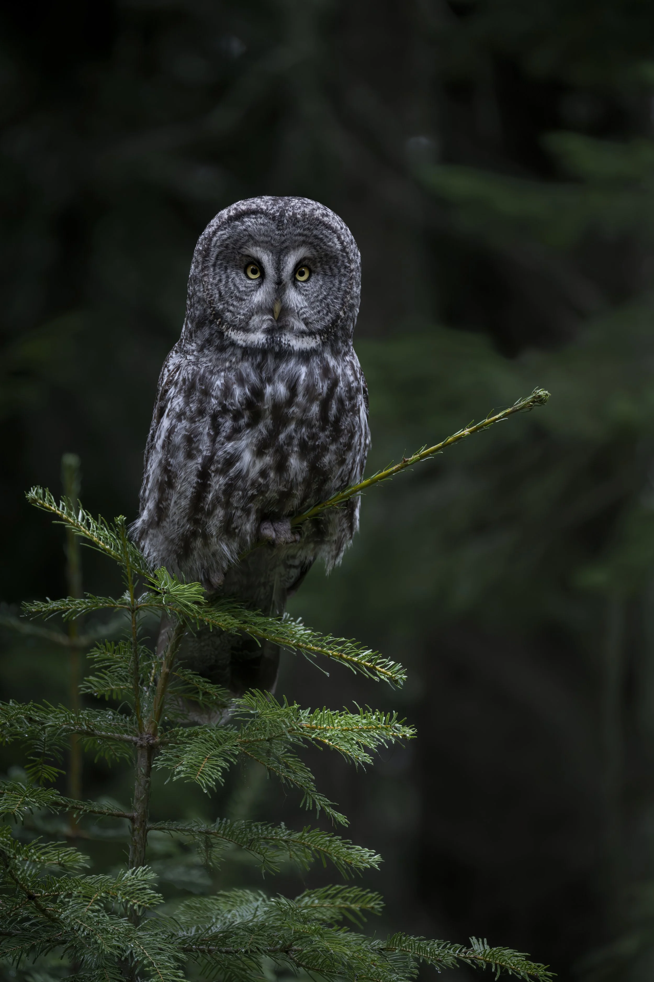 The great gray owl is probably the species that I’ve spent the most time in the field photographing. These large owls use perches to prey mainly on voles, but do occasionally hunt other small rodents. They thrive in old-growth forests with meadows or open areas to hunt. Great grays are an extremely sensitive species that deserve our attentiveness. Other names for the great gray owl include: Phantom of the North; Great Gray Ghost.